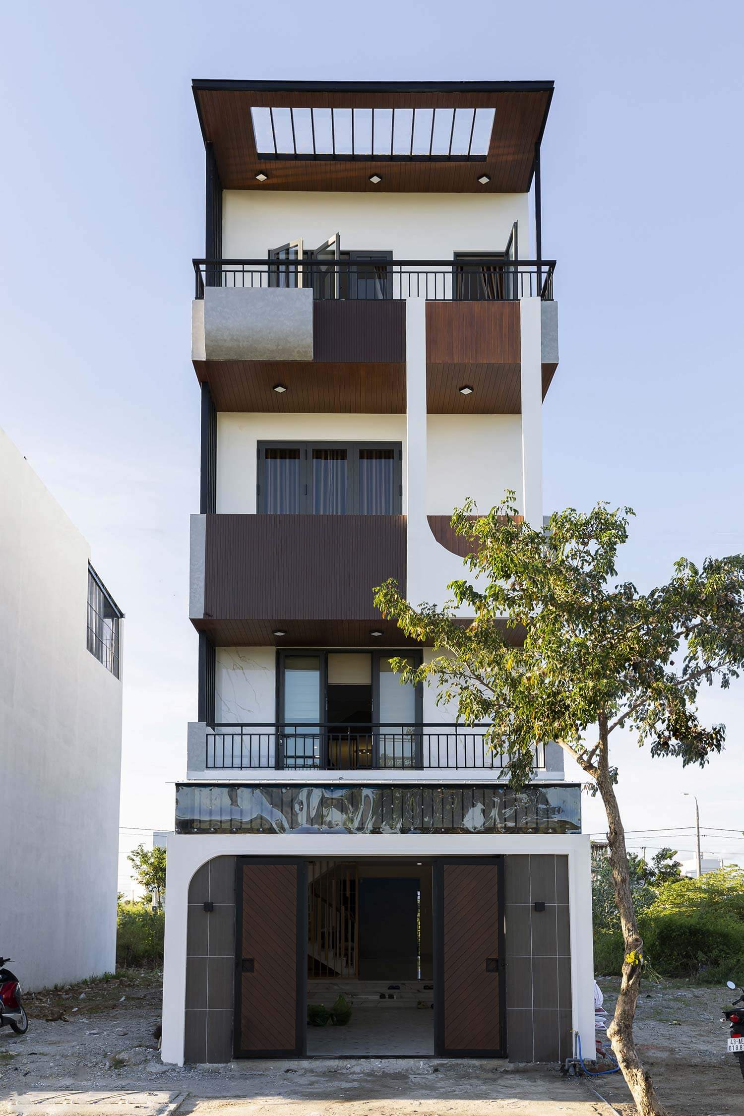 Ngôi nhà 4 tầng vừa được KASAI hoàn thiện với mặt tiền siêu cứng cáp, chỉ nhìn từ xa đã thấy ngôi nhà cực bền vững. Với 4 tầng cùng kiến trúc vuông vức hiện đại ngôi nhà mang đến cảm giác rất thanh cao và thoáng sáng. Nếu đang có ý định xây nhà trọn gói tại Đà Nẵng diện tích 5x20m 4 tầng tham khảo ngay mẫu nhà này của KASAI nhé!Sự kết hợp giữa đường cong và hình khối rõ ràng