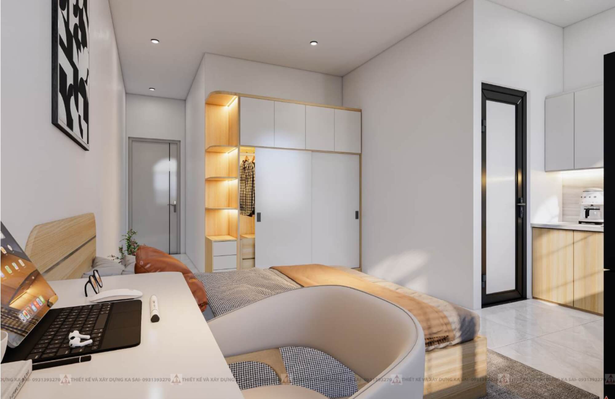 Phong cách tân cổ điển luôn mang đến cảm giác rất sang trọng cao cấp, với mục đích xây căn hộ dịch vụ cho thuê hướng đến khách hàng cao cấp thì phong cách này lại rất phù hợp. Căn hộ này được KASAI thiết kế với mặt tiền phong cách tân cổ điển và nội thất phong cách hiện đại cực kỳ hài hòa.