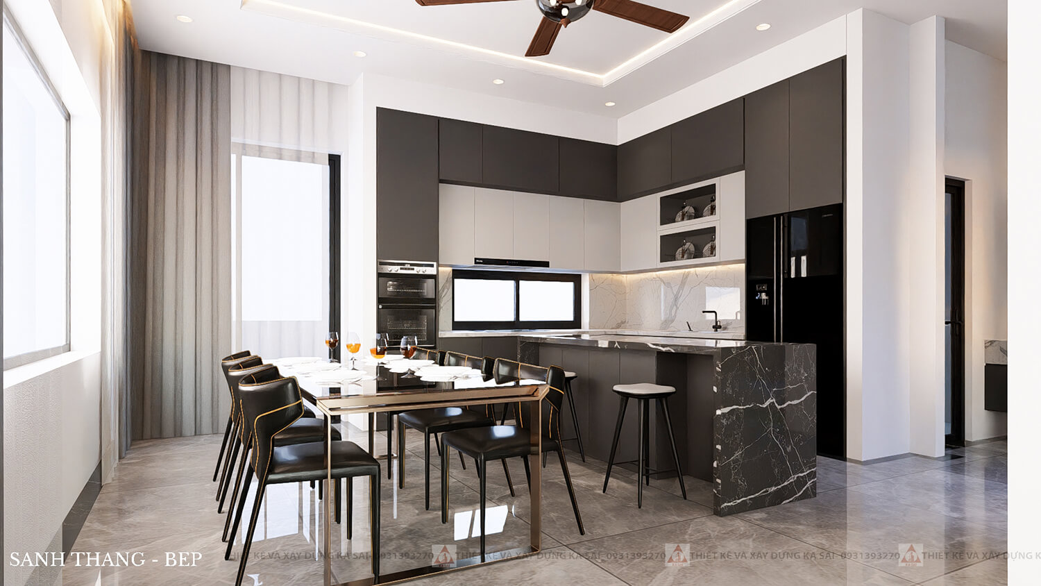 - Tầng 1: Phòng kinh doanh, phòng bếp, WC.