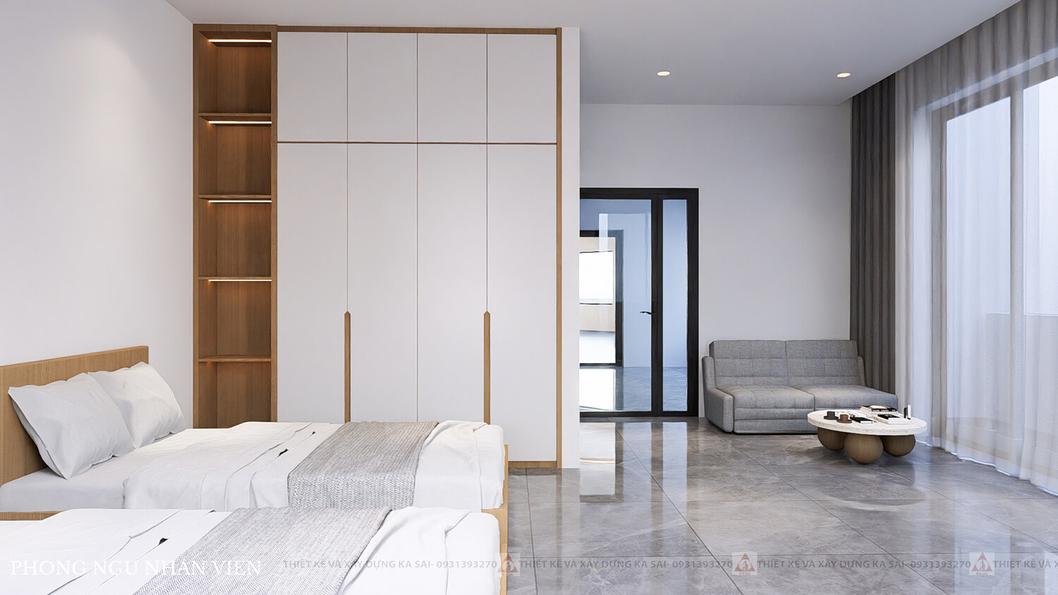 - Tầng 2: Văn phòng làm việc, phòng ngủ, WC.