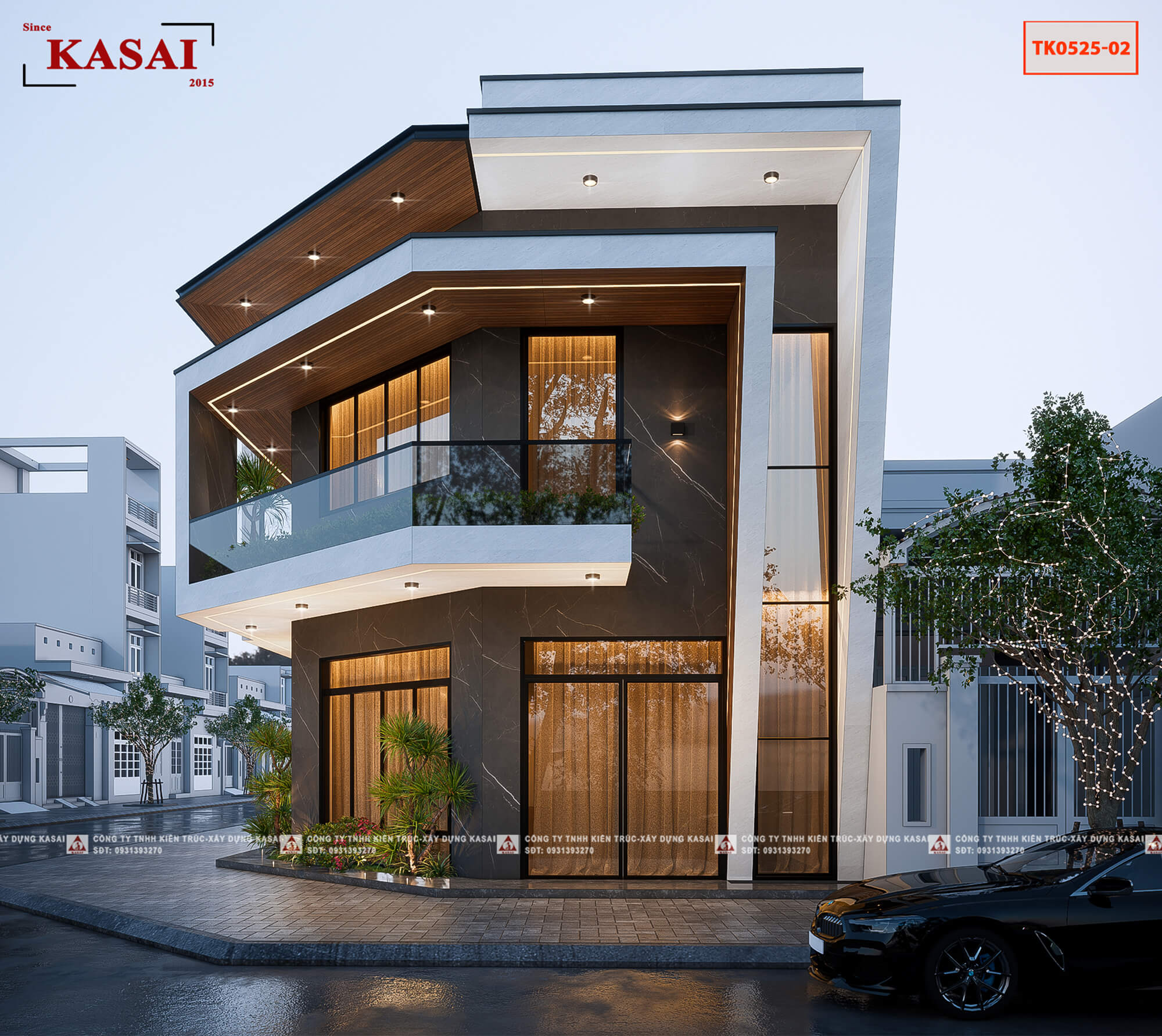 Kiến trúc đương đại nổi bật với mặt tiền vát chéo đầy cá tính