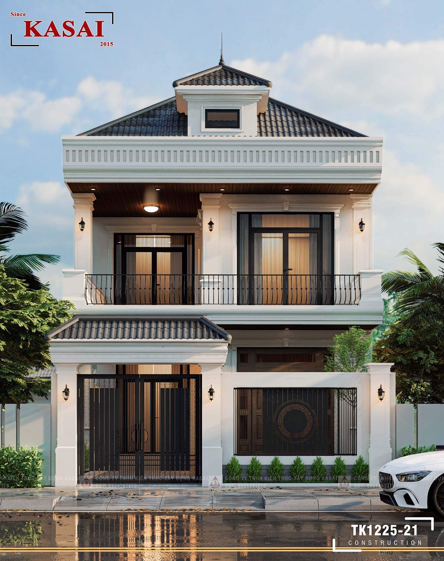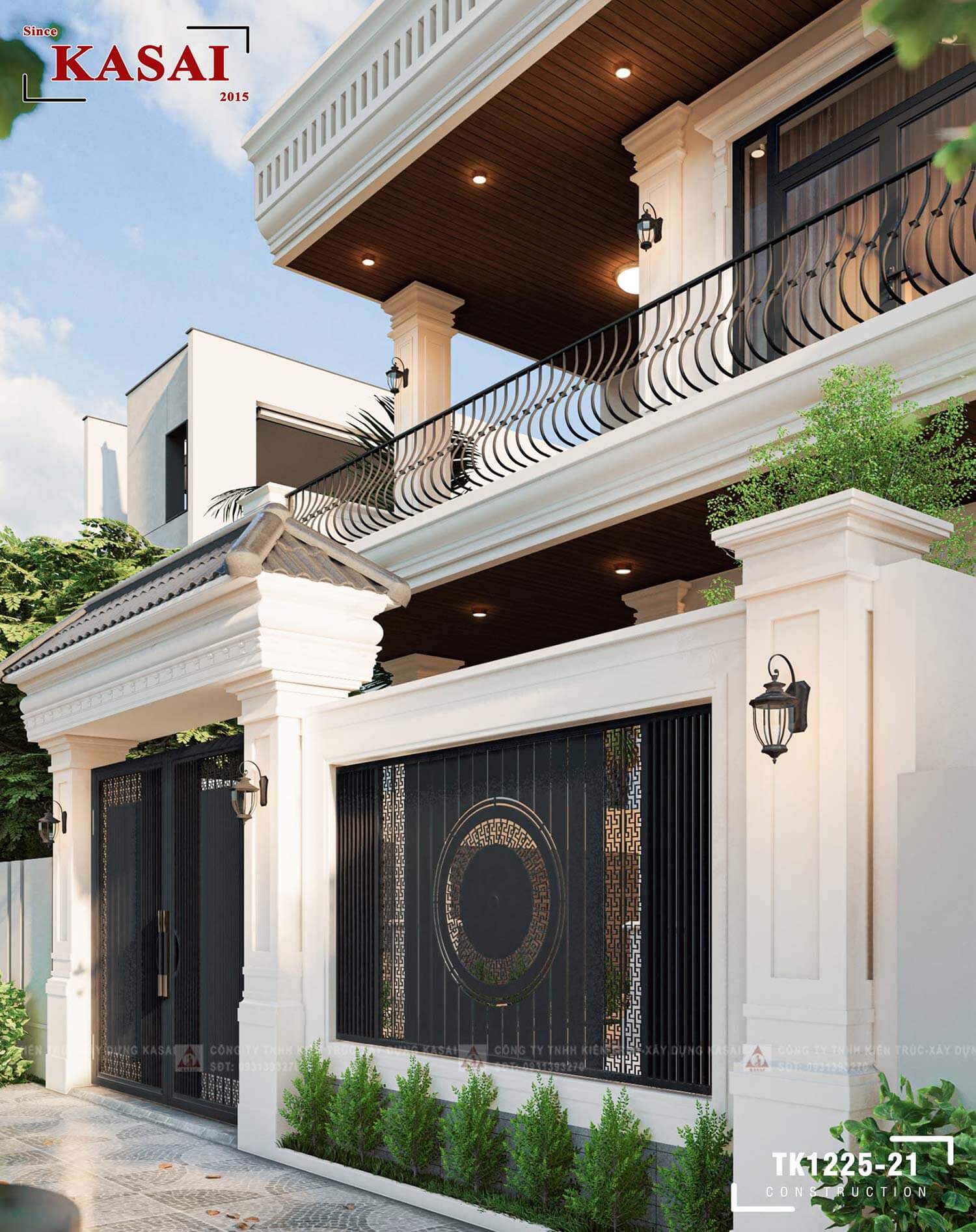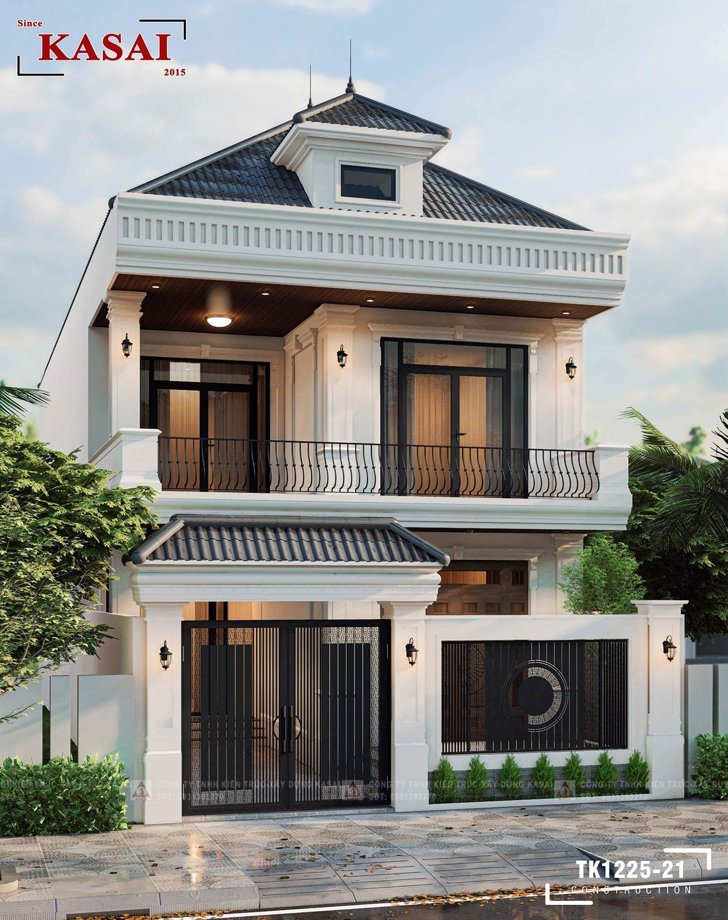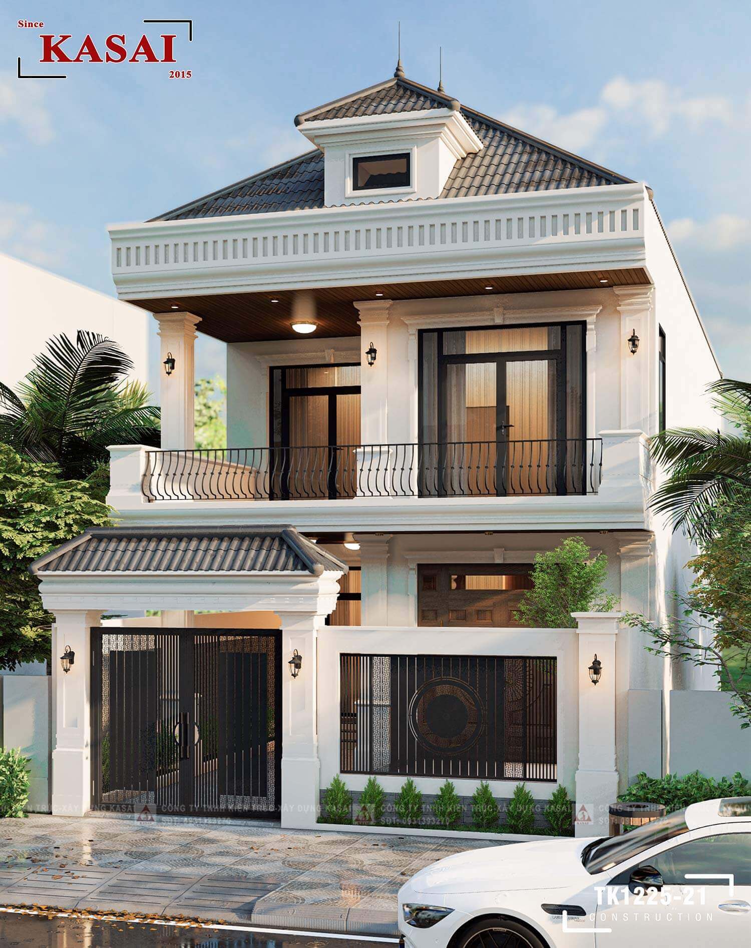 Mẫu nhà 8x18m 2 tầng ấn tượng với mái Nhật và tân cổ điển