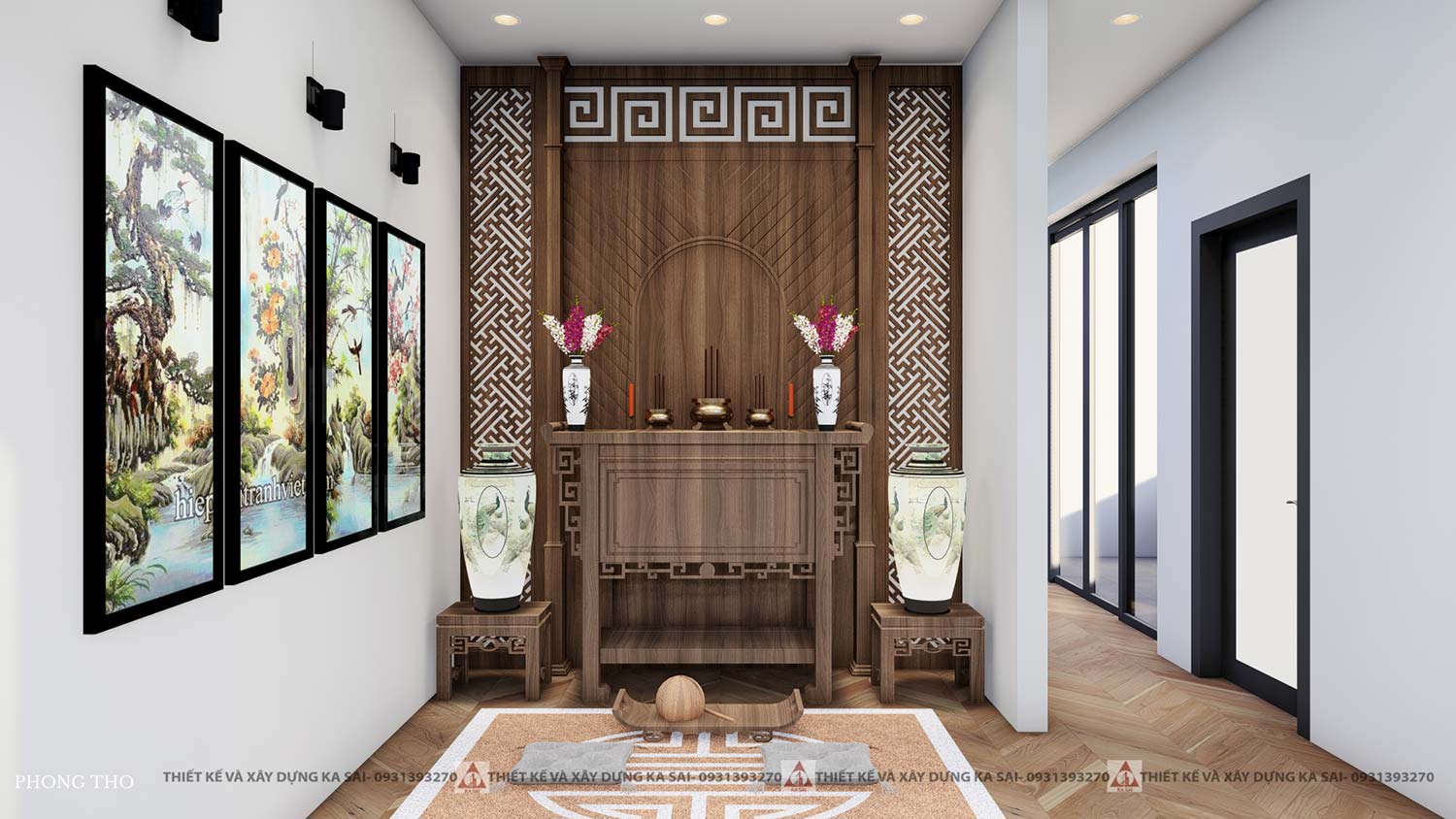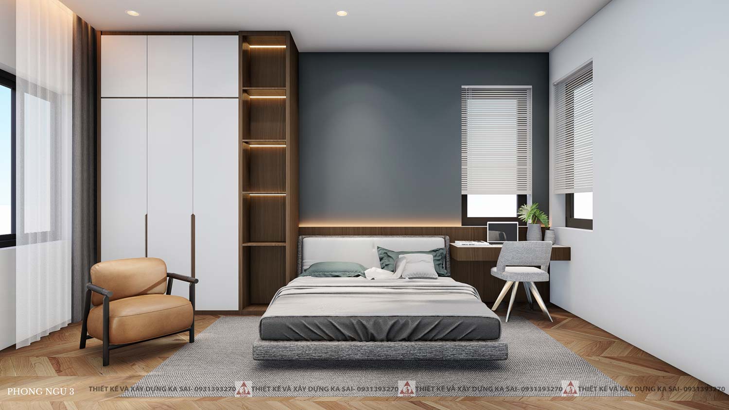 Ngôi nhà được thiết kế với 2 tầng gồm đầy đủ tiện nghi sinh hoạt. Trong đó tầng 1 được bố trí phòng khách, bếp, phòng ngủ và tầng 2 được bố trí 3 phòng ngủ, phòng thờ, sân thượng mát mẻ. Gia chủ sẽ có cuộc sống thật riêng tư, thoải mái tận hưởng từng phút giây trong tổ ấm của mình.