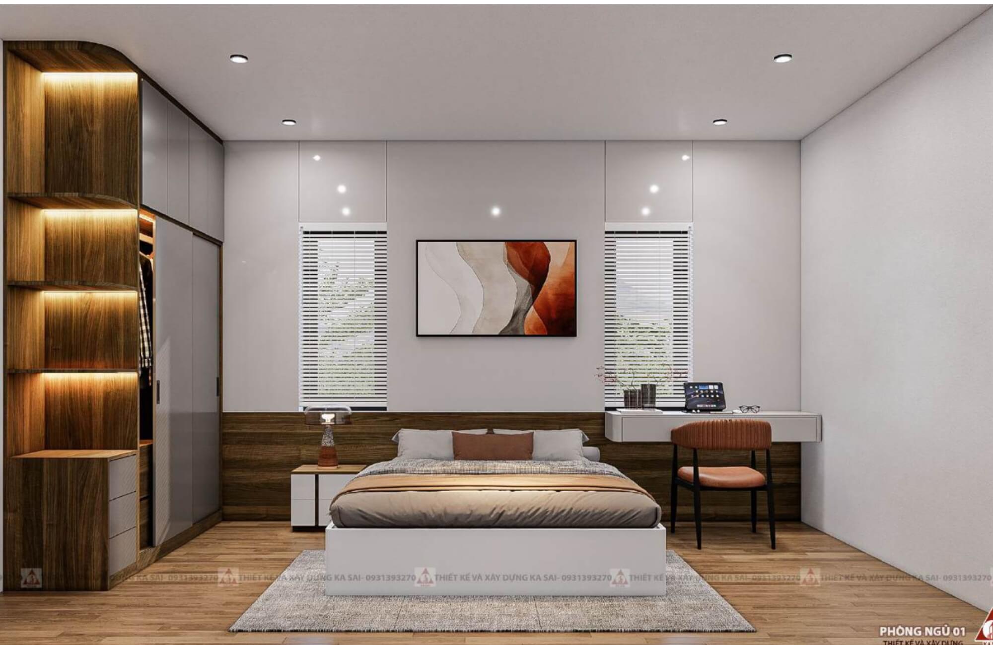 Phòng ngủ 1 mẫu nhà 9x15m 2 tầng