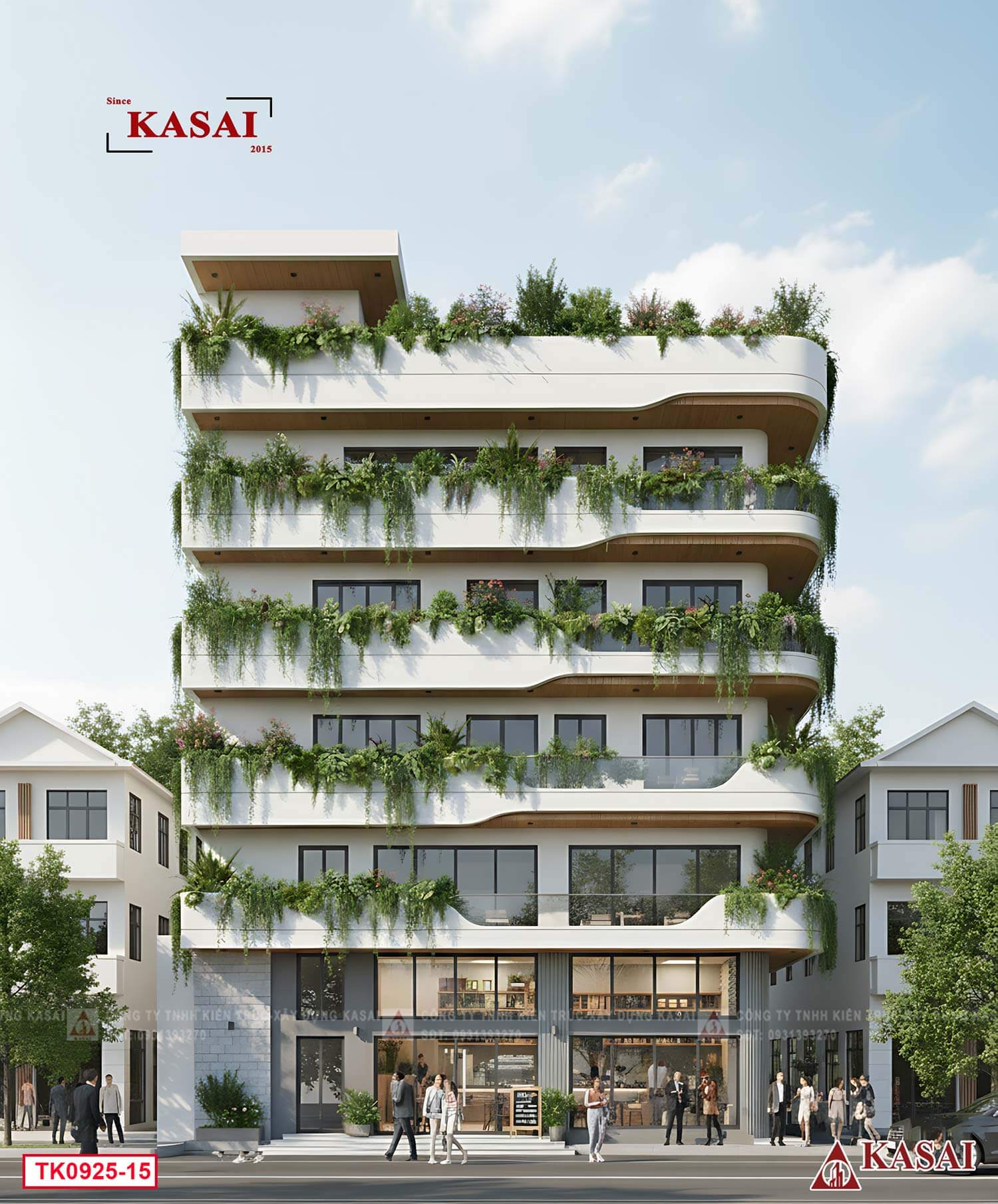 Nhà 5 tầng xanh hiện đại kết hợp văn phòng cho thuê