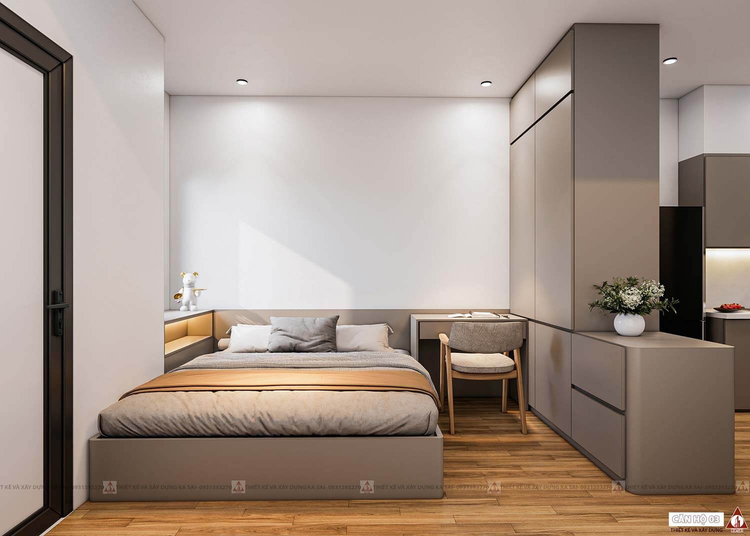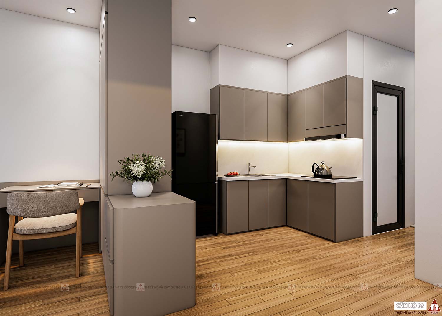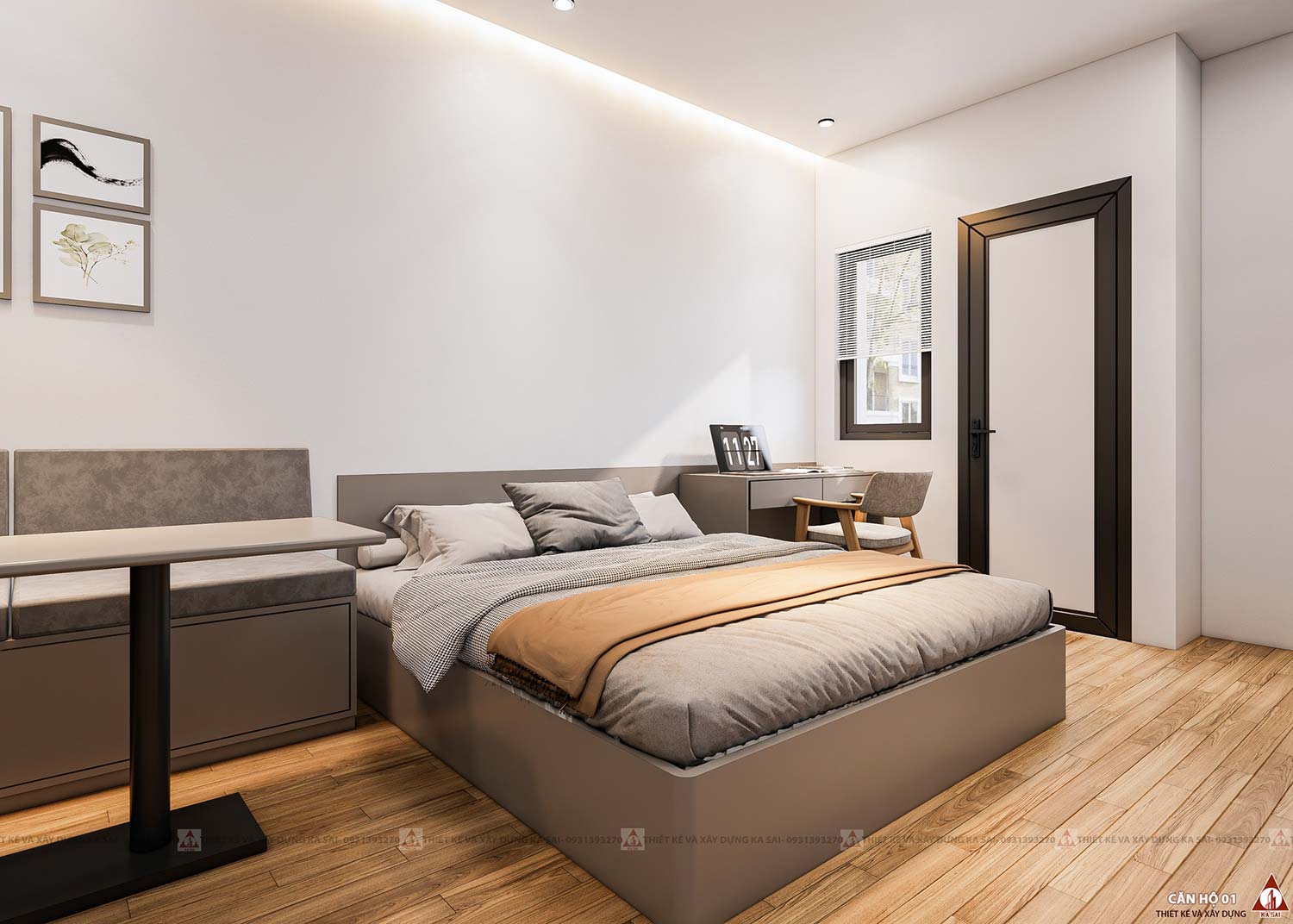 Bên trong nội thất không gian sống được bố trí rất hiện đại, tối giản và đầy tiện nghi. Nội thất sử dụng chất liệu gỗ với tone màu xám, màu nâu gỗ mang đến cảm giác ấm cúng và sang trọng.