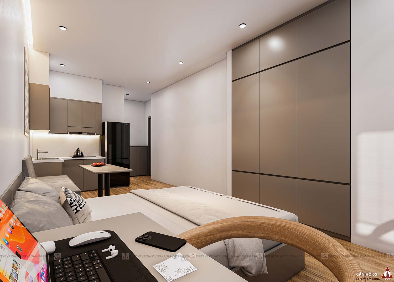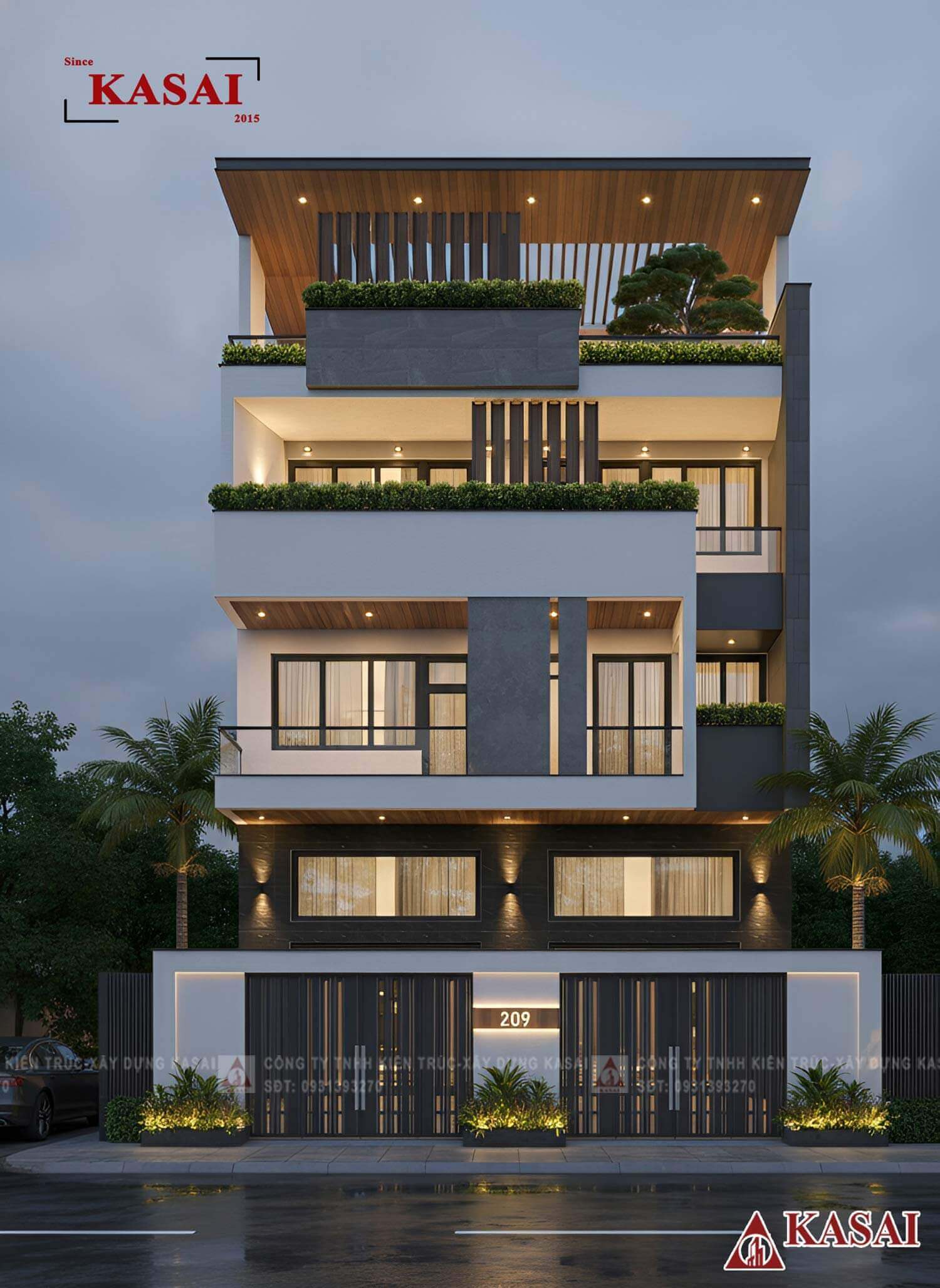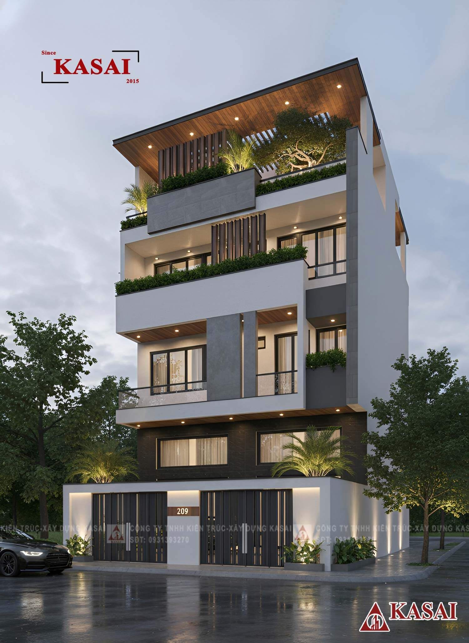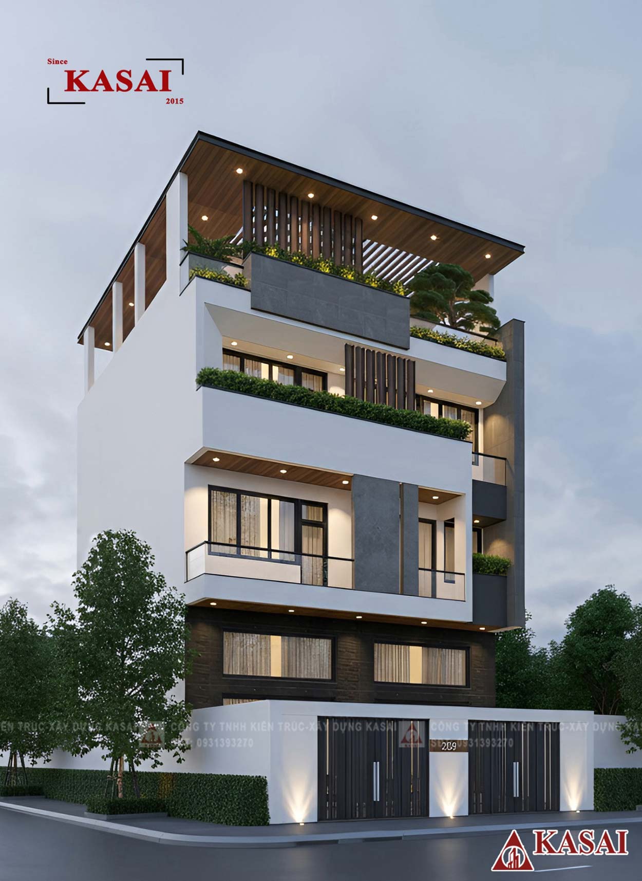 Thiết kế căn hộ cho thuê 4 tầng 10x15m hiện đại và sang trọng với hình khối mạnh mẽ, không gian mở, cây xanh bố trí hợp lý. Tất cả tạo nên không gian sống cực kỳ sang trọng, thoáng sáng và mát mẻ, cảm giác rất thư giãn. Muốn tạo hiệu quả kinh doanh tốt, luôn có khách thuê dài hạn đừng bỏ lỡ mẫu thiết kế căn hộ đẹp này của KASAI.
