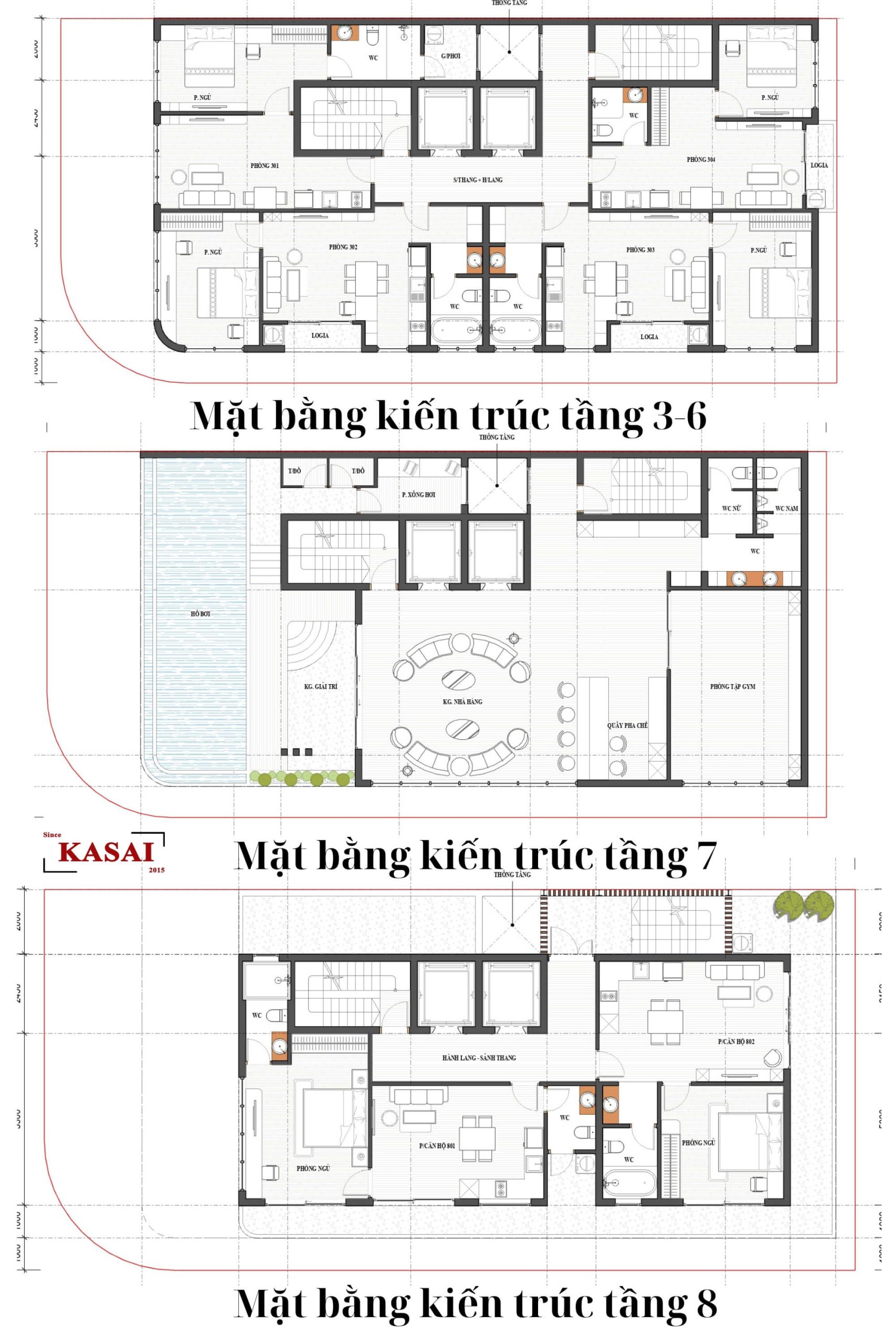 - Tầng 7: Hồ bơi, nhà hàng, phòng tập gym
