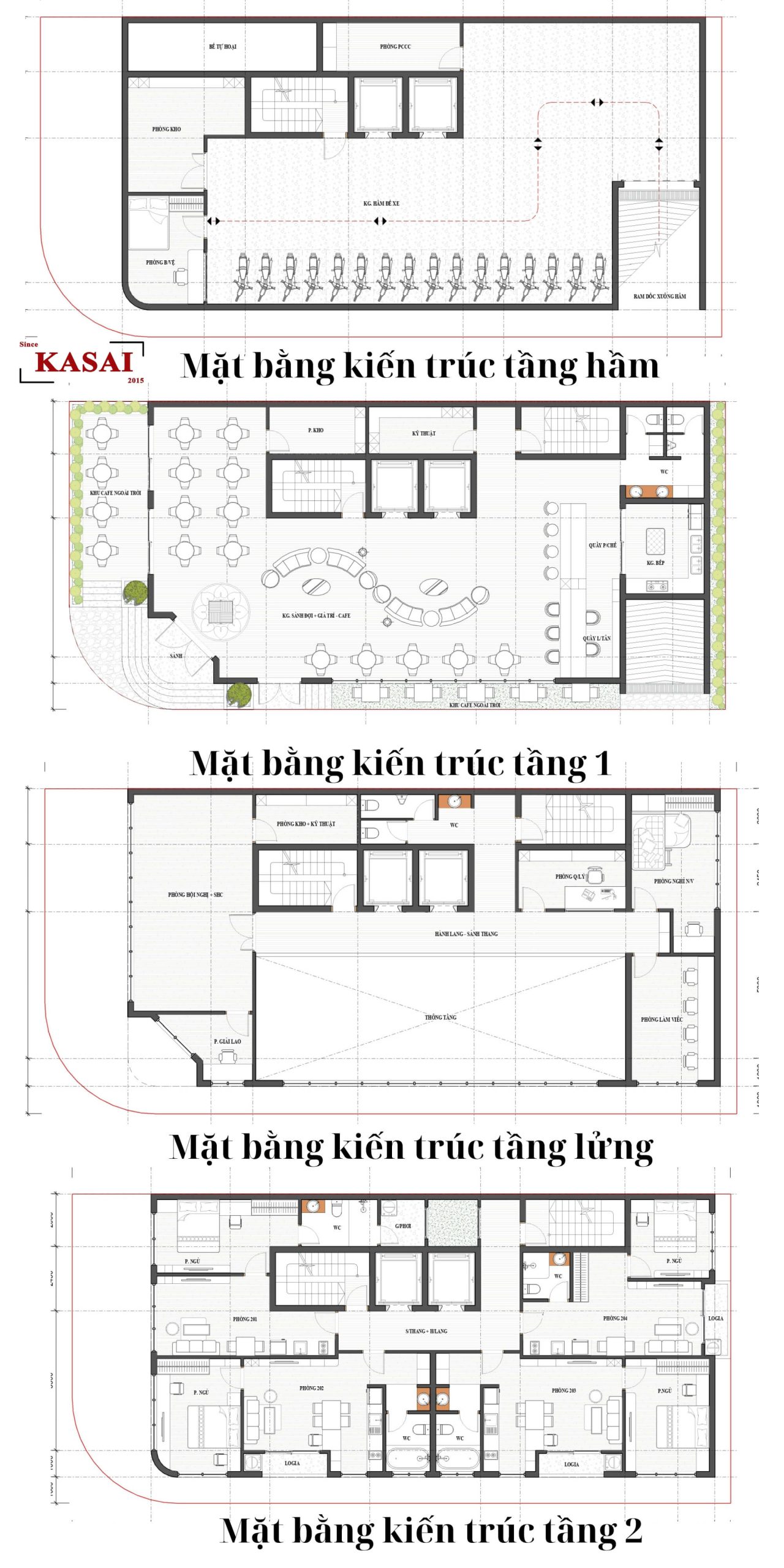 - Tầng hầm: Gara, phòng bảo vệ, phòng PCCC.