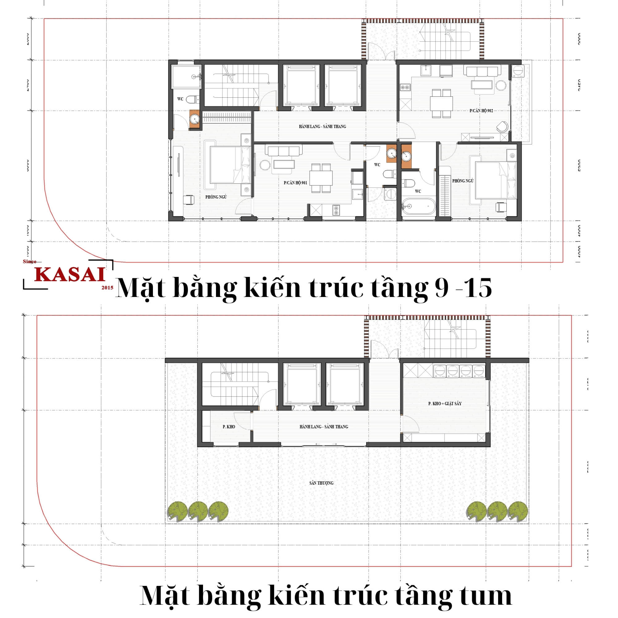 - Tầng 9 -15: Mỗi tầng 2 phòng