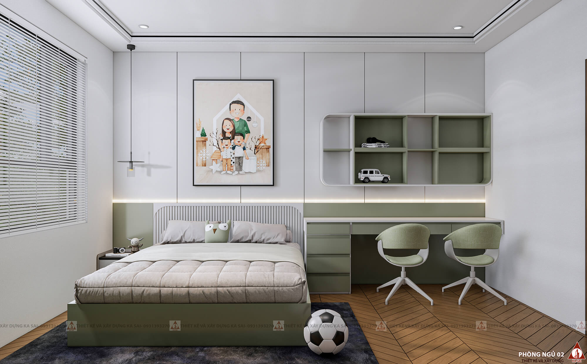 Phòng ngủ 2 thiết kế nhà 3 tầng 5x22m
