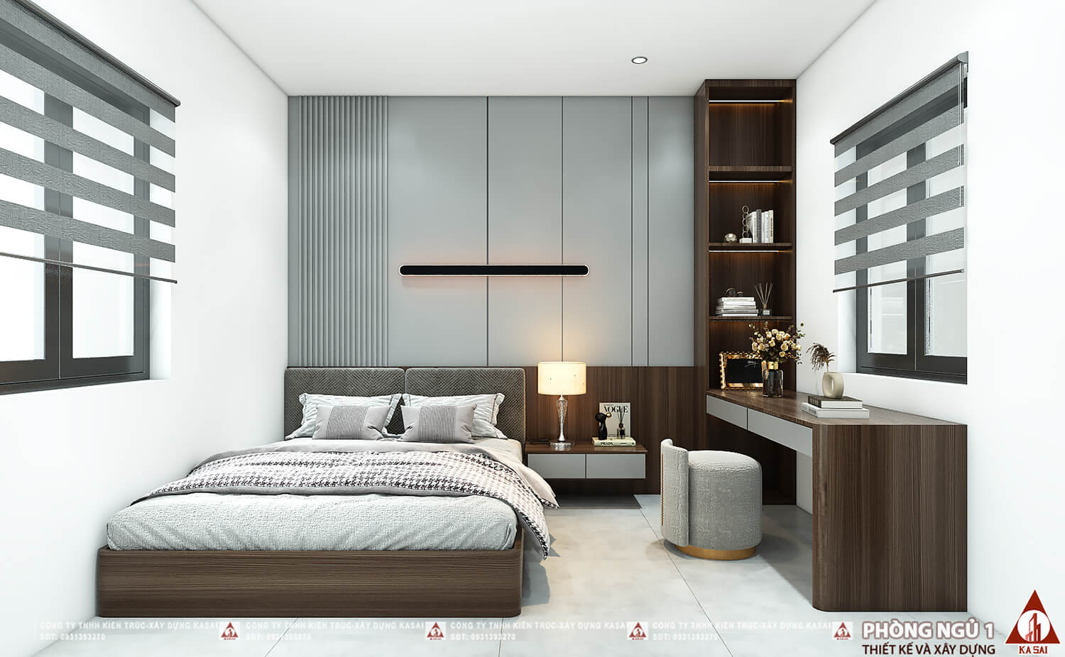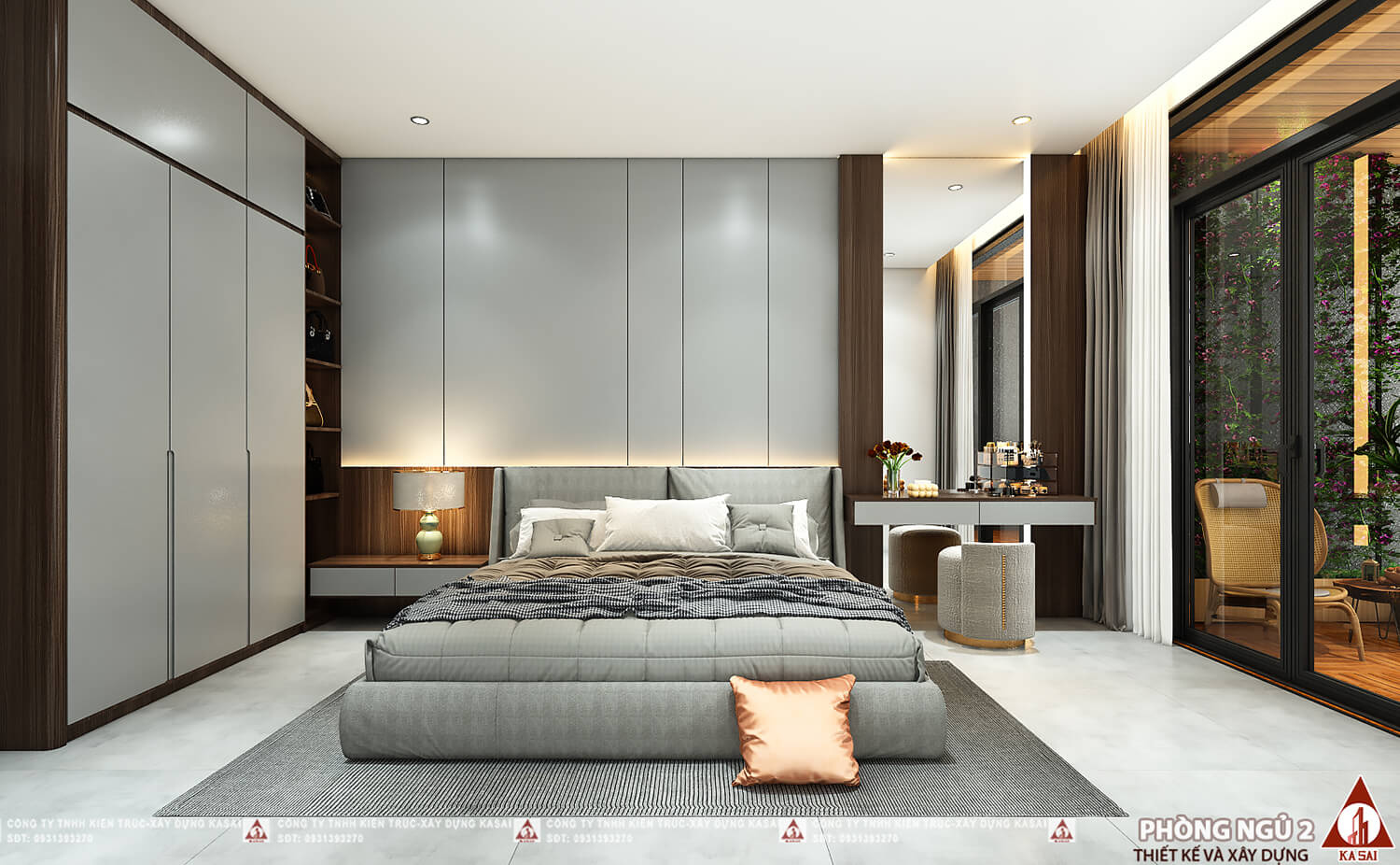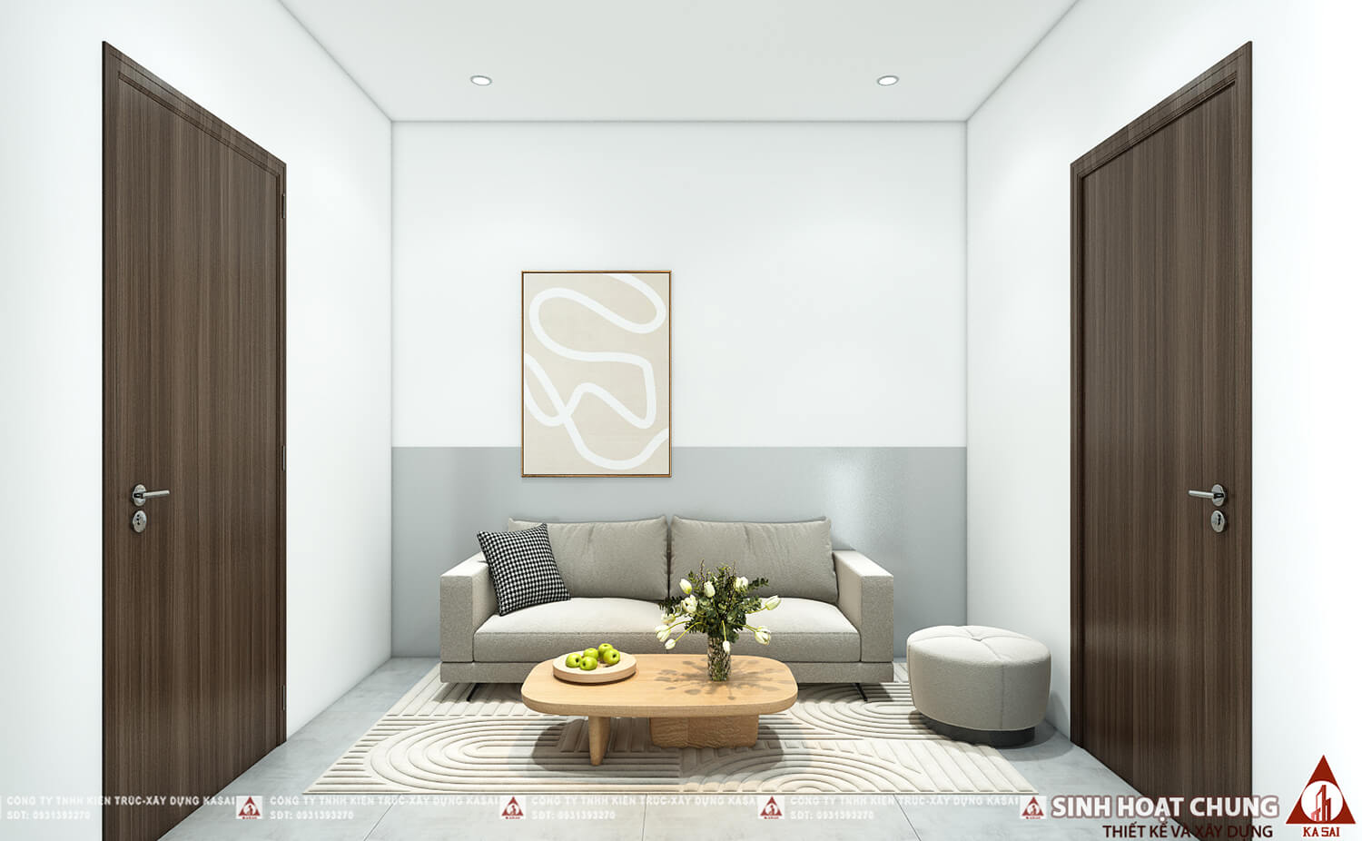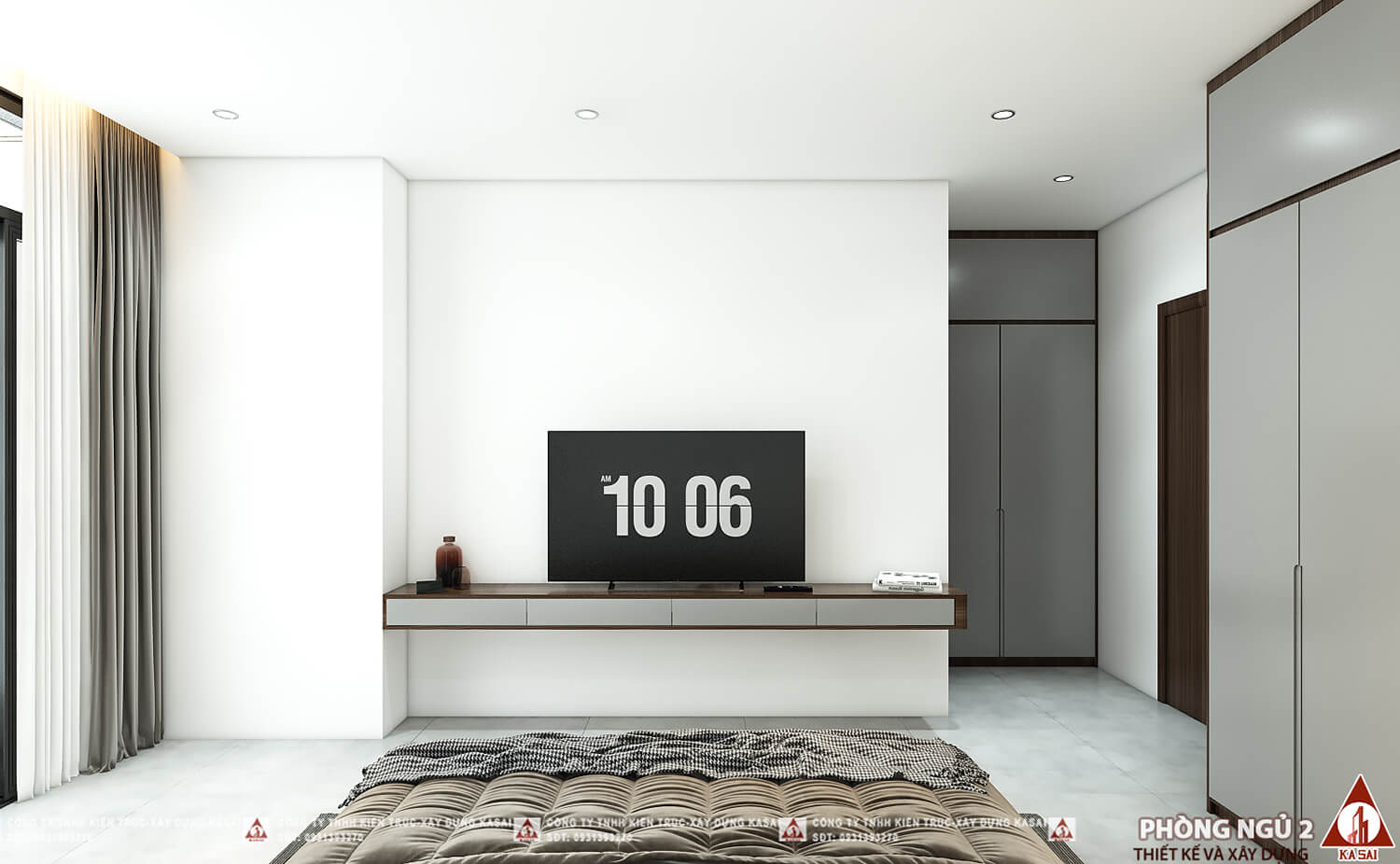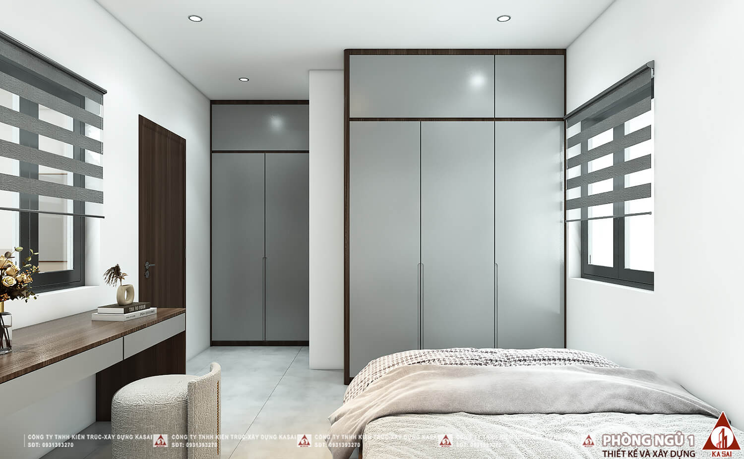 - Tầng 2: Phòng ngủ 1, phòng sinh hoạt chung, phòng ngủ 2, WC.