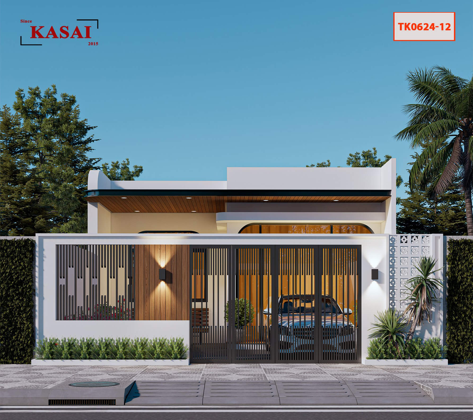 Thiết kế nhà mặt tiền 7m sâu 12m vừa hiện đại lại pha chút truyền thống mang đến cảm giác rất gần gũi nhưng cũng rất hợp ở phố. Ngôi nhà có rất nhiều điểm nhấn khác nhau lan tỏa từ cổng đến mái tạo nên sự thống nhất trong mặt tiền thu hút bất kỳ ai lướt ngang qua. Cùng tham khảo ngay hình ảnh 3D, bản vẽ chi tiết mẫu nhà này bên dưới và liên hệ Kasai tư vấn nếu yêu thích nhé!