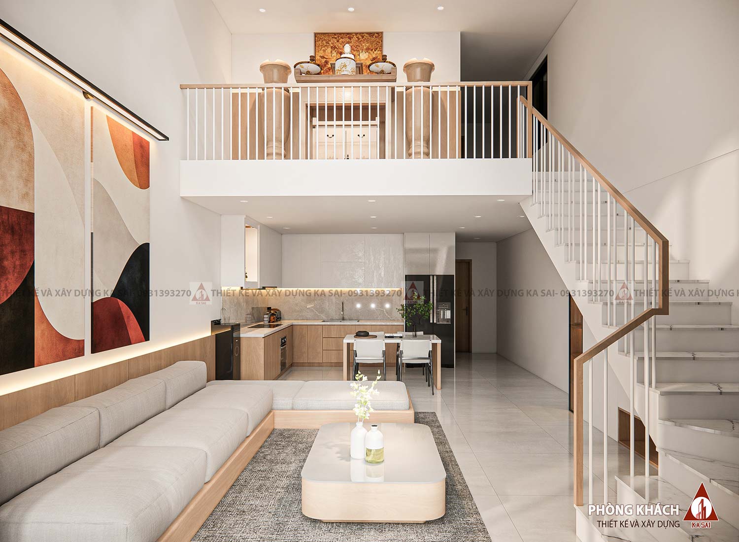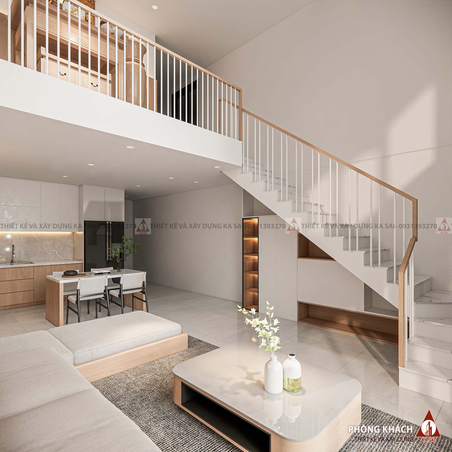 Phòng khách thiết kế nhà ở kết hợp căn hộ 3 tầng