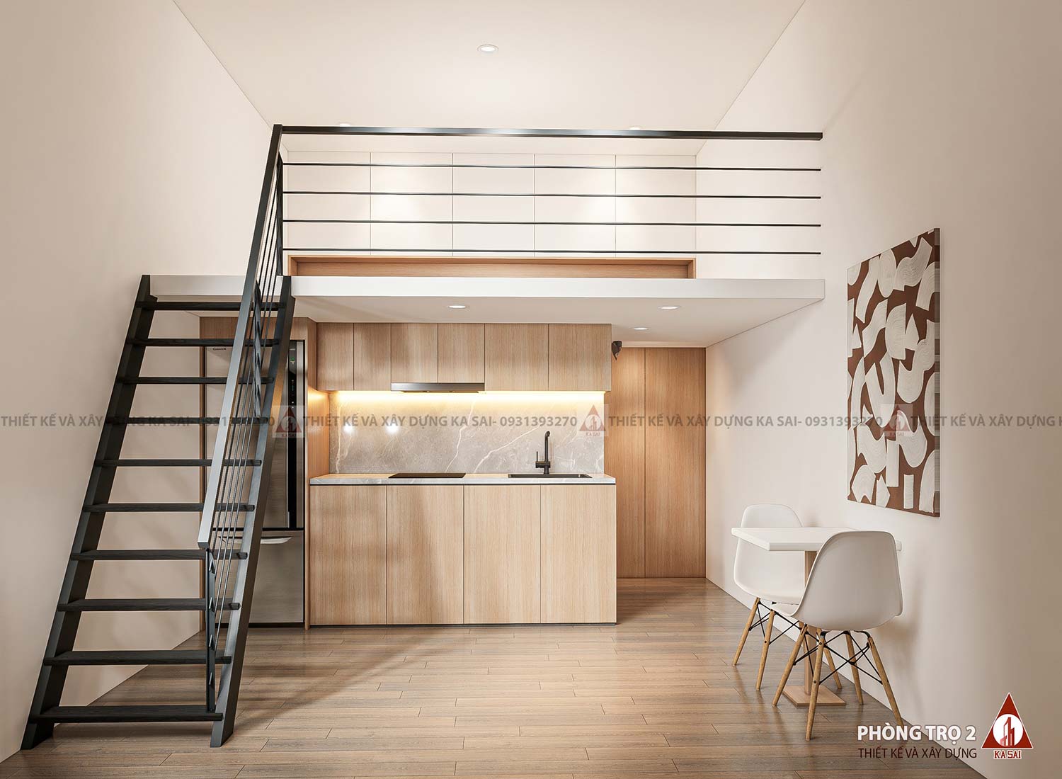 Phòng cho thuê được thiết kế với không gian rộng rãi gồm 1 gác lửng phía trên