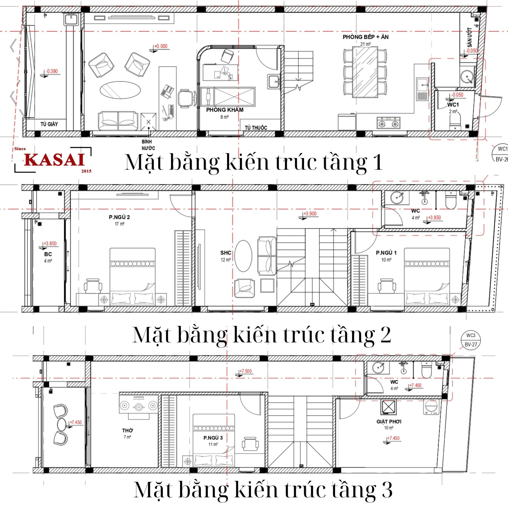Thông tin chi tiết dự án nhà 3 tầng 4.5x16m của KASAI