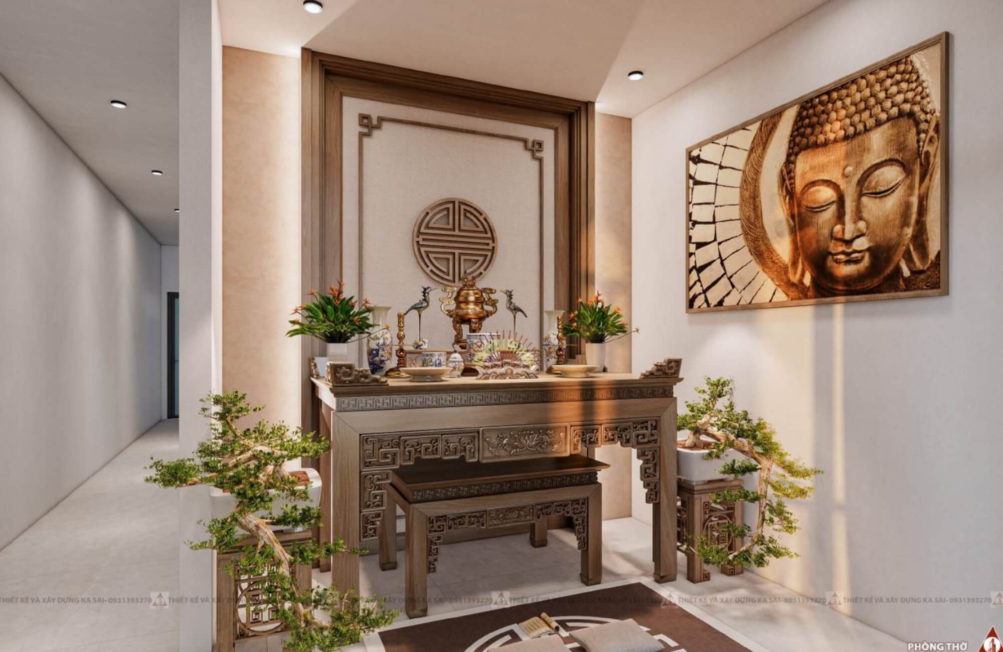Phòng thờ thiết kế nhà ống 4,5x16m 3 tầng