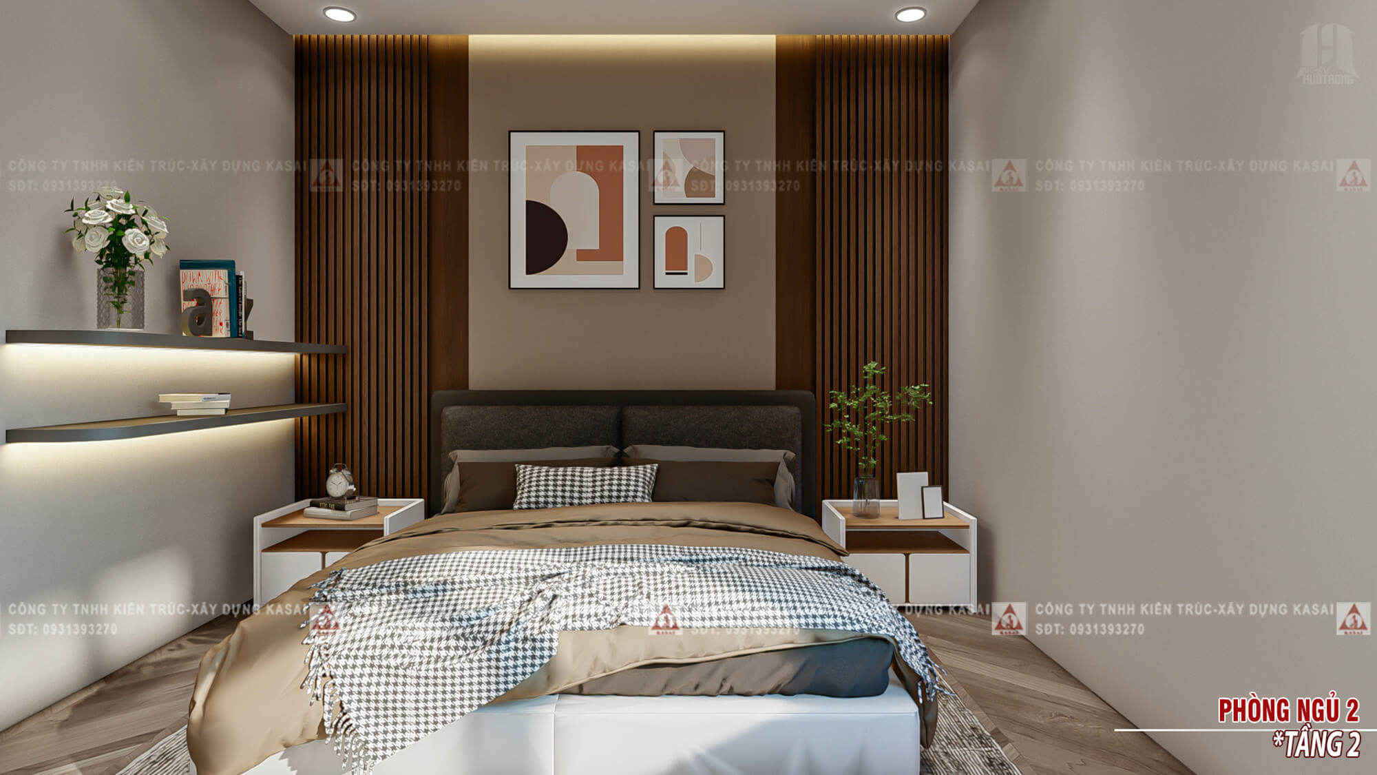 - Tầng 2: Phòng ngủ master, không gian làm việc, phòng ngủ 2