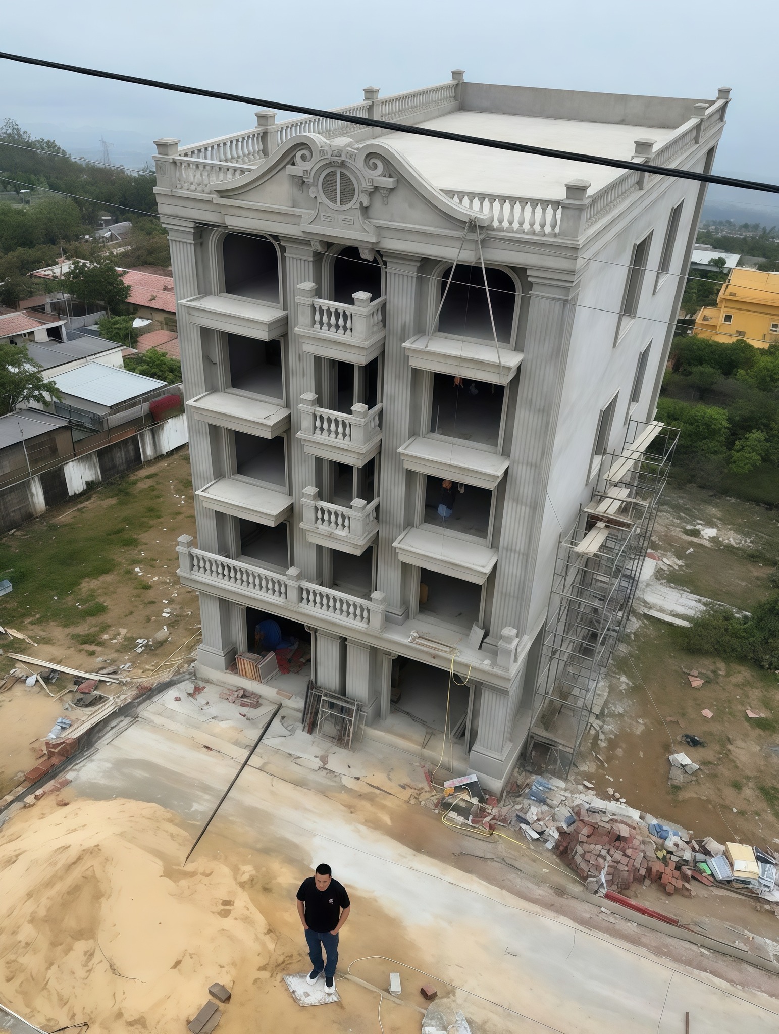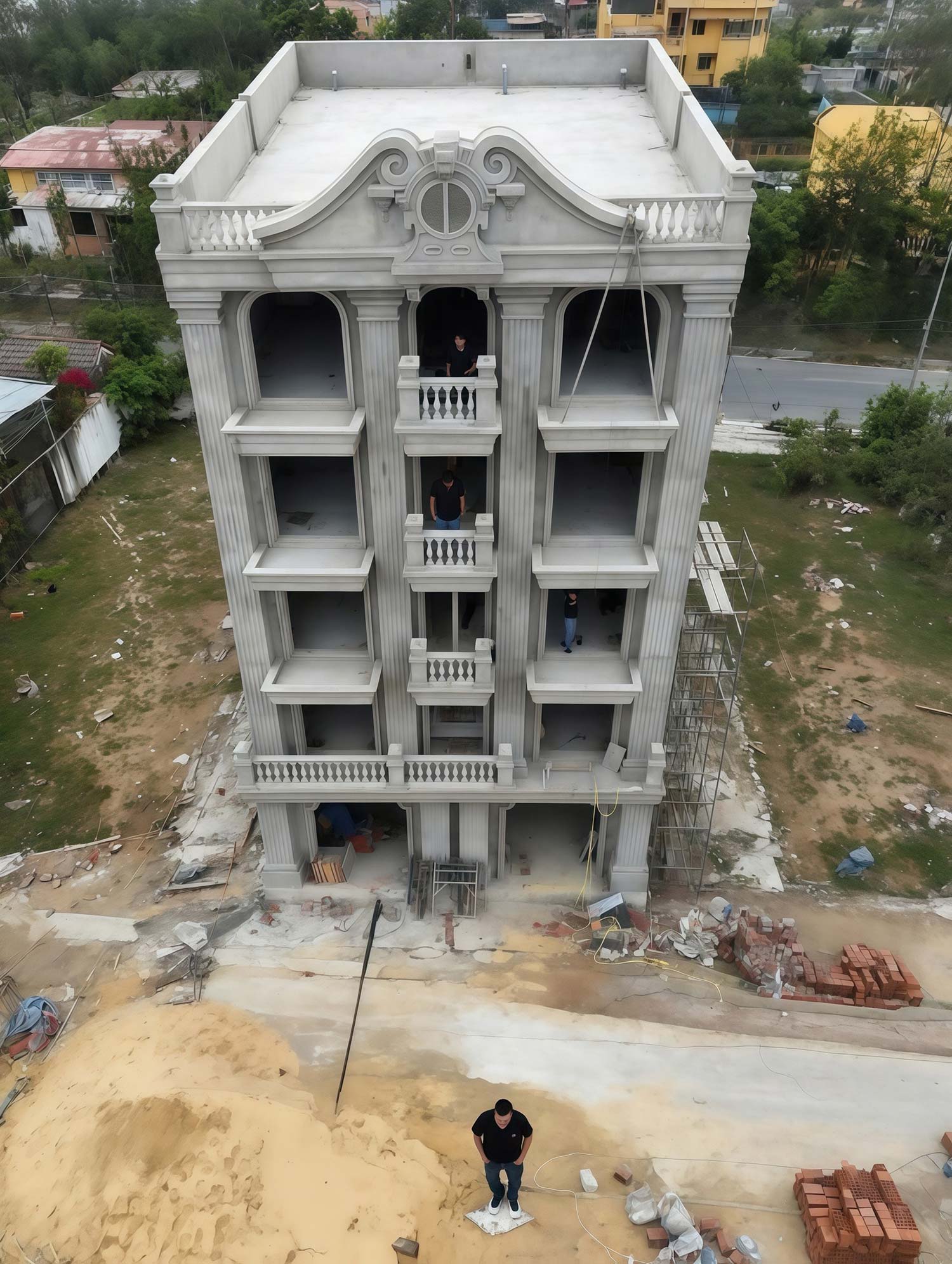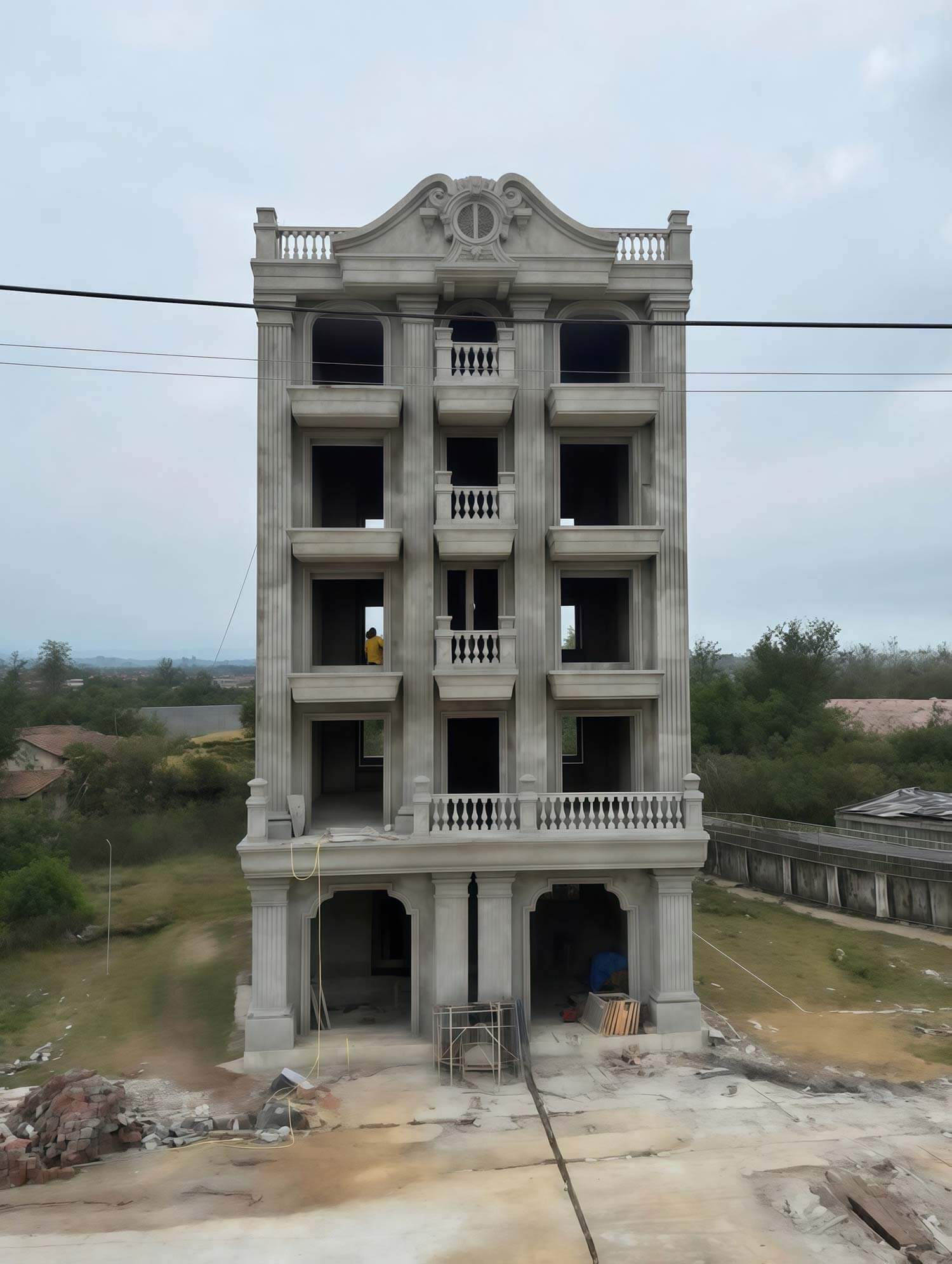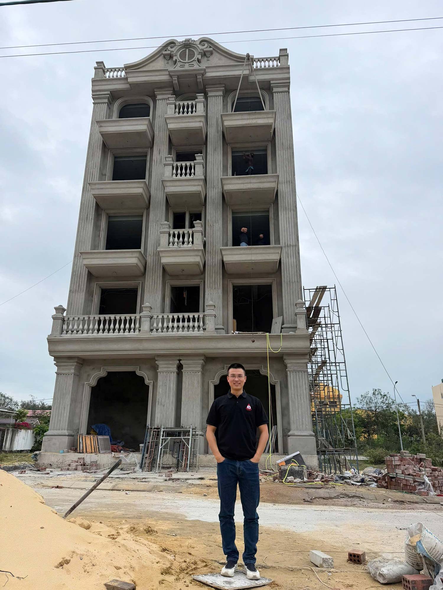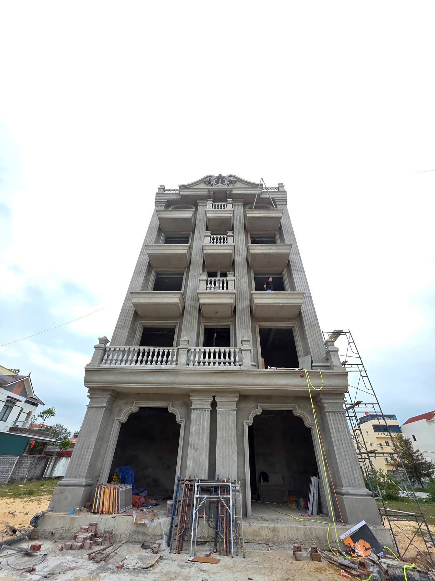 Khách sạn vô cùng vững chãi, từng đường nét kiến trúc được thực hiện tỉ mỉ và đầy sự kinh nghiệm của đội ngũ thi công. Các hệ trụ cột cũng như chi tiết phào chỉ được thực hiện rất tinh tế và chuẩn kỹ thuật nhờ đó dù chỉ mới phần thô đã thấy công trình rất uy nghi và thanh lịch. Đặc biệt phần mái được thi công cực nét giúp khẳng định tay nghề cao của đội ngũ thi công.